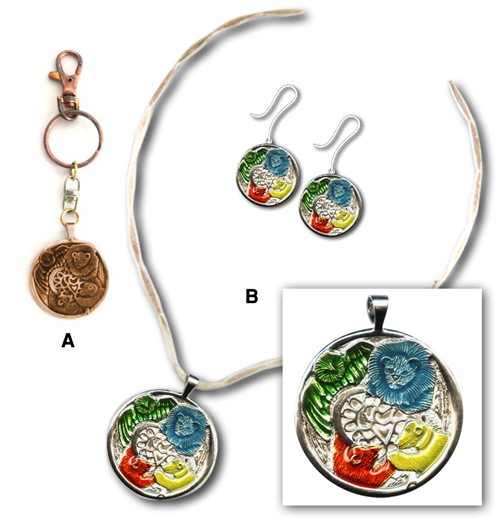 B. Necklace - sterling silver with Cloisonné medalion, Earrings - Cloisonné medalion with silver studs |